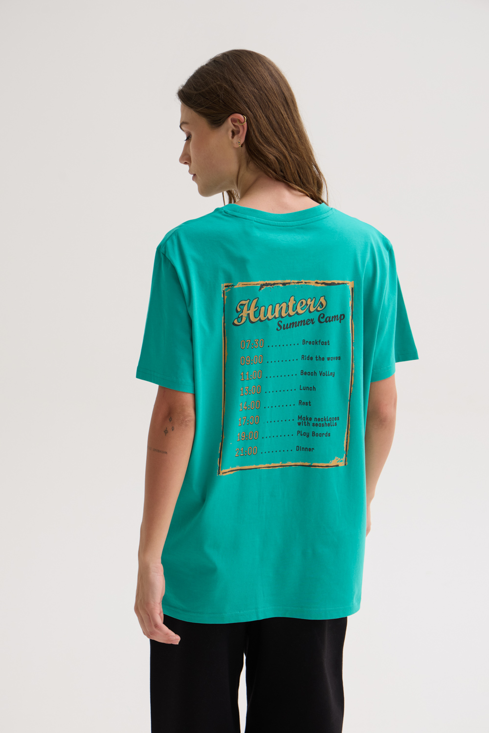Καλωσόρισες στο πιο cool club του καλοκαιριού! Το Hunters Summer Club t-shirt σε πράσινο και μαύρο είναι φτιαγμένο από 100% οργανικό βαμβάκι για άνεση που διαρκεί όλη μέρα. Ένα must-have κομμάτι για χαλαρές εμφανίσεις με στυλ και summer vibes!